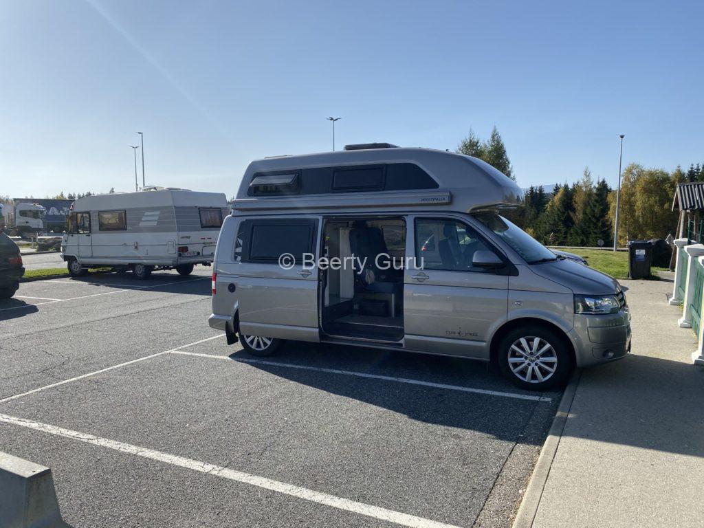 Zákaz státia karavanov platí aj pre malé dodávky, bežne sa stáva, že v noci prídu na takéto parkovisko policajti a rozdávajú pokuty aj keď spíš v VW T4 Multivan.