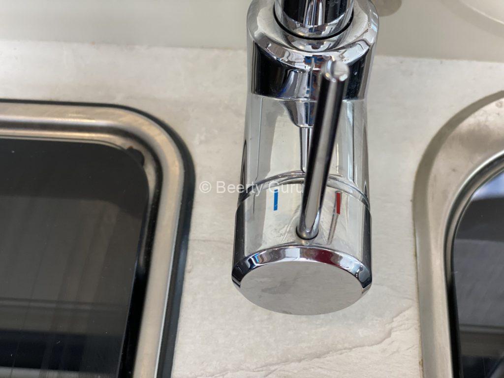 - Drinkwater moet in de boiler worden gevuld voordat de drinkwaterverwarmer wordt ingeschakeld. Water wordt in de boiler gevuld door de kraan op de stand "warm water" te zetten. De waterpomp start en het water wordt gevuld. De boiler is volledig gevuld als er water uit de kraan begint te stromen.