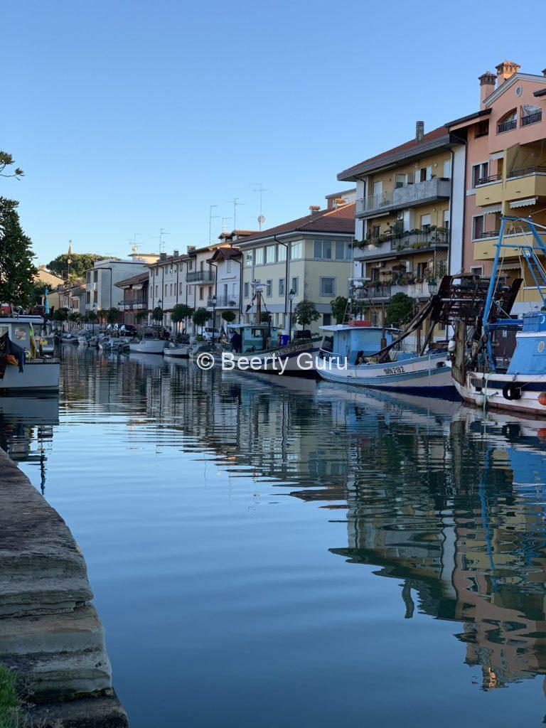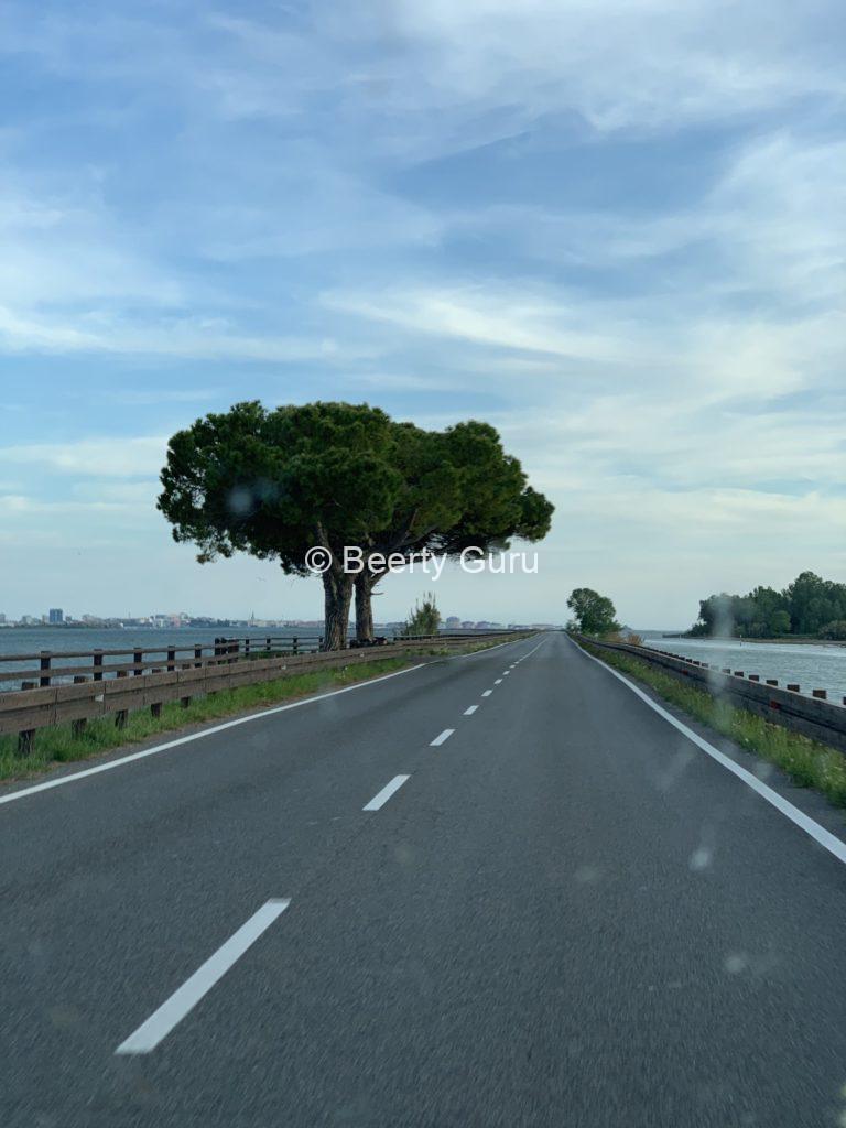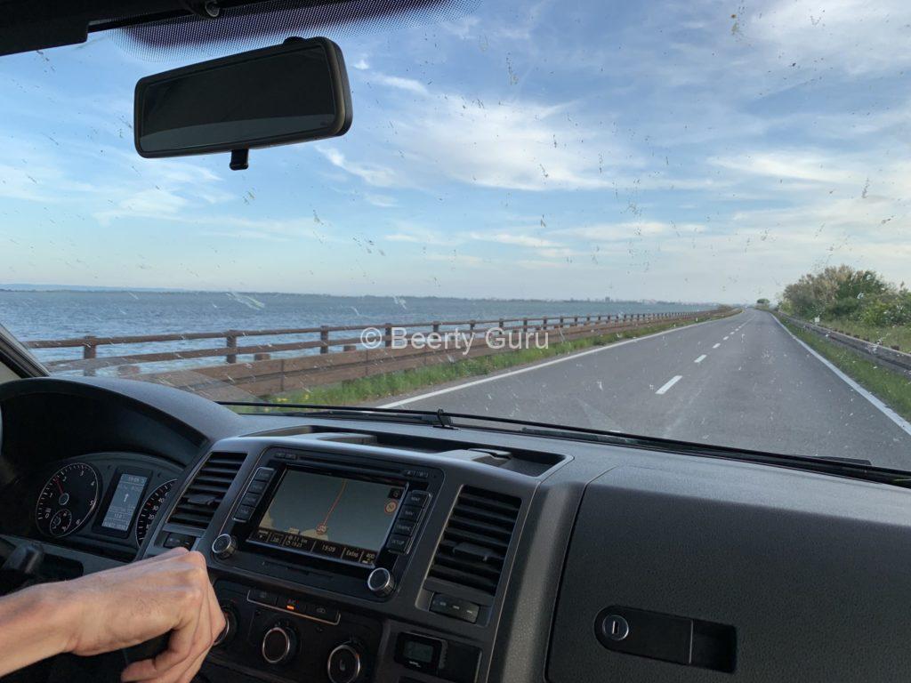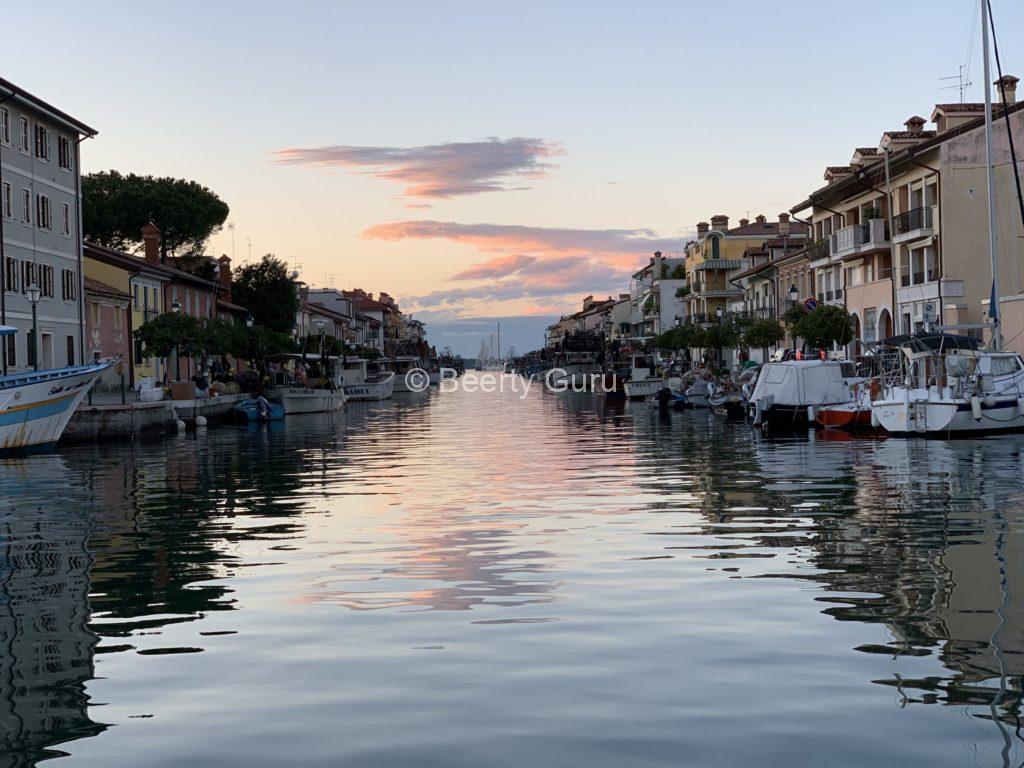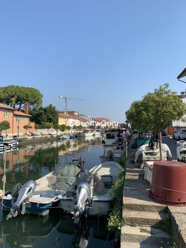 Grado'ya ulaşmak için bir lagündeki köprüye benzeyen bir yoldan gidiyorsunuz. Oldukça güzel bir yol, yanınızdan küçük tekneler geçiyor.